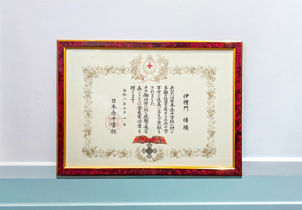 当社の代表・伊禮門 悟が日本赤十字社より「金色有功章(きんしょくゆうこうしょう)」を受章いたしました。